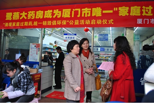 2012年3月15日上午,由廈門市食品藥品監(jiān)督管理局和廈門鷺燕大藥房有限公司聯(lián)合發(fā)起的“清理家庭過(guò)期藥、綠色健康倡環(huán)?!惫婊顒?dòng)啟動(dòng)儀式在鷺燕大藥房前埔分店舉行。本次活動(dòng)的主旨是倡導(dǎo)健康環(huán)保,同時(shí)給廣大人民群眾營(yíng)造一個(gè)安全健康的用藥環(huán)境,有效減少因過(guò)期藥品使用給家庭帶來(lái)的健康傷害。