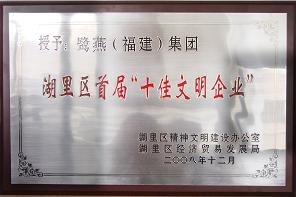 據(jù)悉,在湖里區(qū)文明辦開(kāi)展的文明企業(yè)創(chuàng)建活動(dòng)中,鷺燕(福建)集團(tuán)有限公司榮膺湖里區(qū)首屆“十佳文明企業(yè)”。